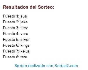 Lista de participantes: sua, tete, vera, kelus, kings, silver, jeke, titez.