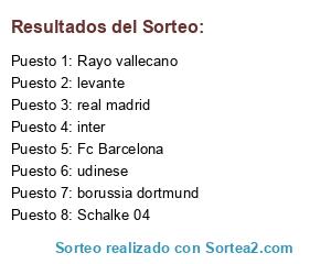 Lista de participantes: Fc Barcelona, Rayo vallecano, borussia dortmund, real madrid, levante, Schalke 04, inter, udinese.