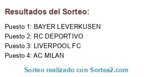 Lista de participantes: RC DEPORTIVO, AC MILAN, BAYER LEVERKUSEN, LIVERPOOL FC.