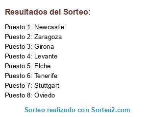 Lista de participantes: Newcastle, Levante, Tenerife, Oviedo, Zaragoza, Elche, Girona, Stuttgart.