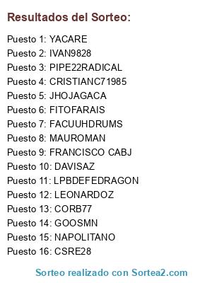 Resultados del sorteo: