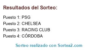 Lista de participantes: DORTMUND, RACING, GREMIO, MILAN, PARIS SG, ESPANYOL, CHELSEA, CORDOBA.