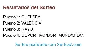 Lista de participantes: VALENCIA, CHELSEA, RAYO, DEPORTIVO/DORTMUND/MILAN.