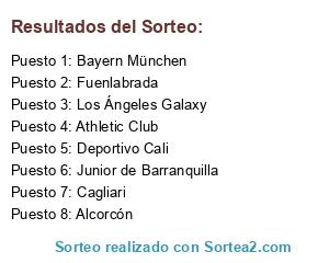 Lista de participantes: Athletic Club, Cagliari, Fuenlabrada, Deportivo Cali, Los Ángeles Galaxy, Bayern München, Junior de Barranquilla, Alcorcón.