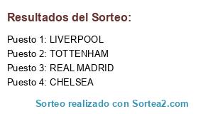 Lista de participantes: CHELSEA, REAL MADRID, TOTTENHAM, LIVERPOOL.