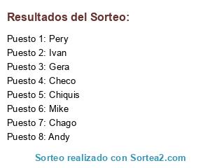 Lista de participantes: Pery, Gera, Mike, Chiquis, Chago, Andy, Ivan, Checo.