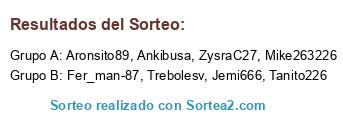 Lista de participantes: Ankibusa, Aronsito89, Jemi666, Tanito226, Mike263226, Fer_man-87, ZysraC27, Trebolesv.
