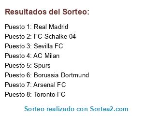 Lista de participantes: Toronto FC, Spurs, Borussia Dortmund, Real Madrid, AC Milan, Sevilla FC, Arsenal FC, FC Schalke 04.