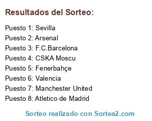 Lista de participantes: F.C.Barcelona, Valencia, Atletico de Madrid, Manchester United, CSKA Moscu, Fenerbahçe, Arsenal, Sevilla.