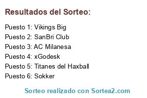 Lista de participantes: Vikings Big, Sokker, xGodesk, Titanes del Haxball, SanBri Club, AC Milanesa.