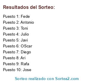 Lista de participantes: Javi, Jose, Ari, Diego, Rafa, Antonio, Toni, OScar, Julio, Fede.