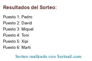 Lista de participantes: Xipi, Marti, Pedro, David, Miquel, Toni.