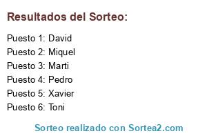 Lista de participantes: Xavier, Pedro, Marti, Miquel, David, Toni.