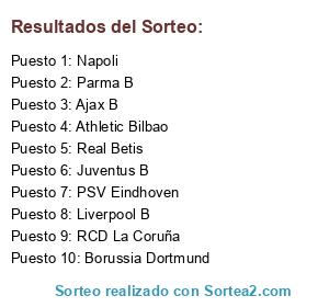 Lista de participantes: Ajax B, PSV Eindhoven, Athletic Bilbao, Liverpool B, Juventus B, Napoli, Real Betis, RCD La Coruña, Parma B, Borussia Dortmund.