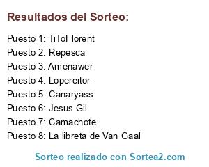 Lista de participantes: TiToFlorent, Amenawer, Lopereitor, Camachote, Canaryass, La libreta de Van Gaal, Jesus Gil, Repesca.
