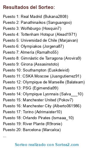 Resultados del sorteo: