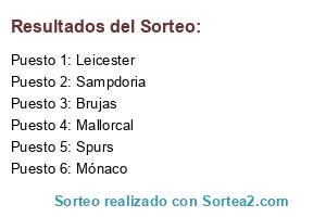 Lista de participantes: Spurs, Sampdoria, Mónaco, Mallorcal, Leicester, Brujas.