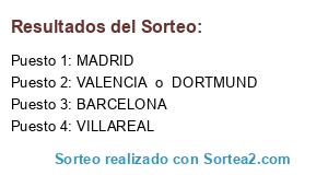 Lista de participantes: VILLAREAL, BARCELONA, MADRID, VALENCIA o DORTMUND.