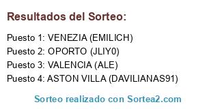 Lista de participantes: VALENCIA (ALE), OPORTO (JLIY0), ASTON VILLA (DAVILIANAS91), VENEZIA (EMILICH).