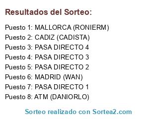 Lista de participantes: MADRID (WAN), ATM (DANIORLO), PASA DIRECTO 1, PASA DIRECTO 2, CADIZ (CADISTA), MALLORCA (RONIERM), PASA DIRECTO 3, PASA DIRECTO 4.