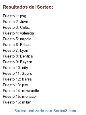 Resultados del sorteo: