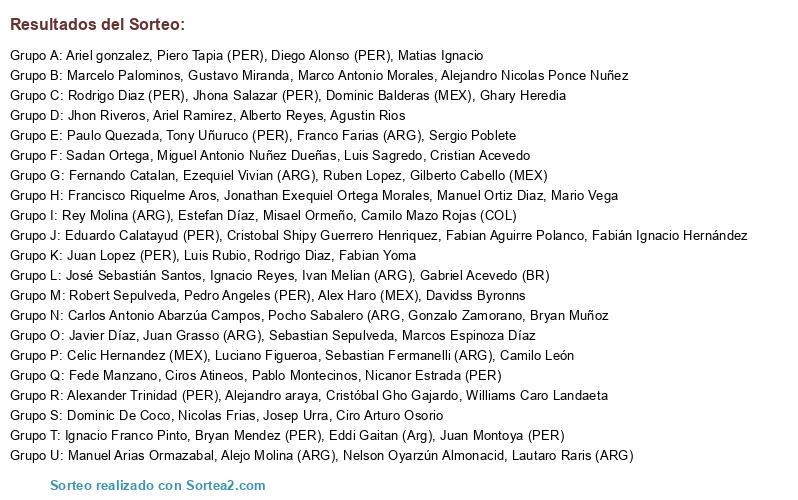Lista de participantes: Ciros Atineos, Alberto Reyes, Carlos Antonio Abarzúa Campos, Javier Díaz, Sadan Ortega, Fede Manzano, Nelson Oyarzún Almonacid, Ciro Arturo Osorio, Sebastian Sepulveda, Robert Sepulveda, Alejandro Nicolas Ponce Nuñez, Ignacio Reyes, Jhon Riveros, Estefan Díaz, Manuel Ortiz Diaz, José Sebastián Santos, Rey Molina (ARG), Marco Antonio Morales, Alexander Trinidad (PER), Celic Hernandez (MEX), Nicanor Estrada (PER), Diego Alonso (PER), Fabian Aguirre Polanco, Mario Vega, Ghary Heredia, Ignacio Franco Pinto, Matias Ignacio, Pedro Angeles (PER), Pablo Montecinos, Misael Ormeño, Eduardo Calatayud (PER), Jhona Salazar (PER), Davidss Byronns, Rodrigo Diaz, Piero Tapia (PER), Marcelo Palominos, Luis Sagredo, Bryan Muñoz, Sebastian Fermanelli (ARG), Cristóbal Gho Gajardo, Fabian Yoma, Ruben Lopez, Dominic De Coco, Luis Rubio, Marcos Espinoza Díaz, Josep Urra, Gustavo Miranda, Cristobal Shipy Guerrero Henriquez, Franco Farias (ARG), Ivan Melian (ARG), Francisco Riquelme Aros, Agustin Rios, Fernando Catalan, Rodrigo Diaz (PER), Dominic Balderas (MEX), Juan Lopez (PER), Alejandro araya, Cristian Acevedo, Ezequiel Vivian (ARG), Gabriel Acevedo (BR), Lautaro Raris (ARG), Tony Uñuruco (PER), Juan Montoya (PER), Juan Grasso (ARG), Paulo Quezada, Bryan Mendez (PER), Camilo León, Williams Caro Landaeta, Gilberto Cabello (MEX), Alejo Molina (ARG), Jonathan Exequiel Ortega Morales, Manuel Arias Ormazabal, Ariel Ramirez, Miguel Antonio Nuñez Dueñas, Alex Haro (MEX), Camilo Mazo Rojas (COL), Nicolas Frias, Ariel gonzalez, Luciano Figueroa, Eddi Gaitan (Arg), Pocho Sabalero (ARG, Gonzalo Zamorano, Fabián Ignacio Hernández, Sergio Poblete.