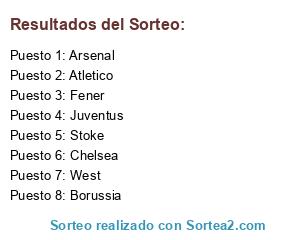 Lista de participantes: Arsenal, Borussia, Atletico, Juventus, West, Fener, Stoke, Chelsea.
