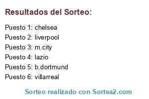 Lista de participantes: VALENCIA, R.MADRID, JUVE, A.VILLA, VILLARREAL, CITY, BENFICA, GALATASARAY, OPORTO, LYON, FIORENTINA, MARSELLA, GIRONDINS, DORTMUND, WORLSBURGO, BAYERN, EVERTON, CHELSEA, RACING, ELCHE, SHALKE, LIVERPOOL.