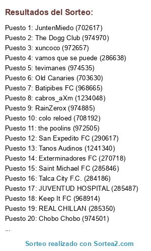 Resultados del sorteo:
