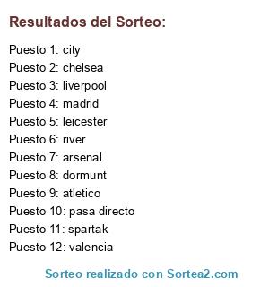 Resultados del sorteo: