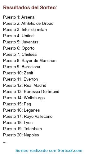 Lista de participantes: Real Madrid, Barcelona, Atletico, Sevilla, Chelsea, Manchester city, Arsenal, United, Psg, Lyon, Bayer de Munchen, Borussia Dortmund, Wolfsburgo, Inter de milan, Juventus, Napoles, Oporto, Zenit, Everton, Totenham, Liverpool, Athletic de Bilbao, Leganes, Rayo Vallecano.
