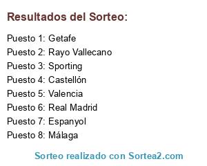 Lista de participantes: Castellón, Valencia, Málaga, Real Madrid, Rayo Vallecano, Sporting, Getafe, Espanyol.