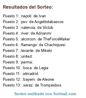 Lista de participantes: JUVE, CADIZ, CITY, LEVANTE, GREMIO, PSV, ATCO. MADRID, ALCORCON, RAYO, DORTMUND, BAYERN MUNICH, ALFOMBRO.