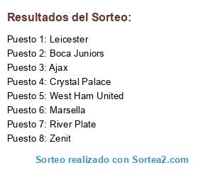 Lista de participantes: Boca Juniors, River Plate, West Ham United, Crystal Palace, Ajax, Zenit, Marsella, Leicester.