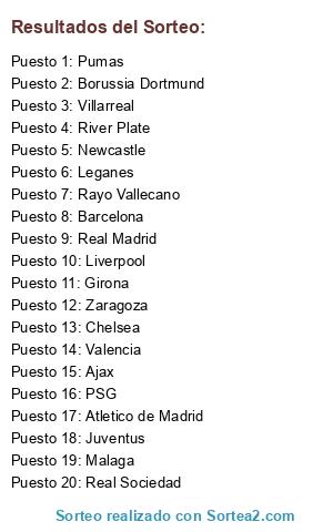 Lista de participantes: Madrid, PSG, Barcelona, City, Bayern, Valencia, Borussia, Chelsea, Manchester United, Juventus, Atletico de Madrid, Roma, Wolfsburgo, Sevilla, Liverpool, Milan, Arsenal, Lazio, Inter, Tottenham.