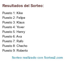 Lista de participantes: Kike, Rafo, Henry, Ava, Yover, Klaus, Roberto, Checho, Felipe.