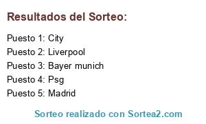 Lista de participantes: Bayer munich, Liverpool, City, Psg, Madrid.