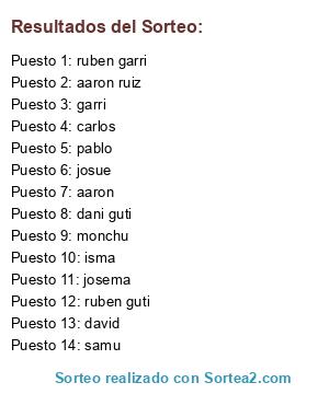 Lista de participantes: samu, garri, monchu, david, ruben guti, dani guti, aaron, josue, carlos, josema, pablo, ruben garri, isma, aaron ruiz.