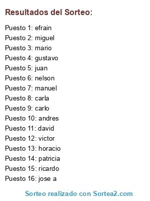 Resultados del sorteo: