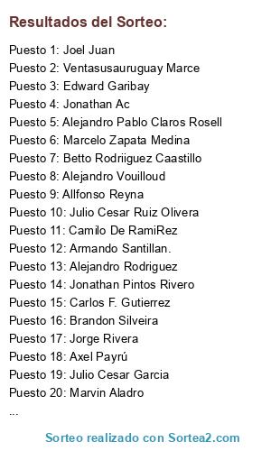Lista de participantes: Lauuty Goodoy, Carlos F. Gutierrez, Edwin Jeovanny, Daniel Fernando Sarabia, Pablo Fuentes Godoy, Juan Carlos Castellanos, Marcelo Zapata Medina, Matias Vega, Daniel Diaz, Ventasusauruguay Marce, Axel Payrú, Xavier Rene, Jean Traore, Martin Etchegaray, Paolo Priegue, Jefry Rojas, Alejandro Pablo Claros Rosell, Abel Gonzalez, Nico Bombaloff, Oscar Godinez, Jonathan Ac, Edward Garibay, Luis Gerardo Aguirre Baldenegro, Fedoski Brignone, Guscrack Psn, Hector Jimenez, Joaquin Guzman, Brandon Silveira, Betto Rodriiguez Caastillo, Marvin Aladro, El Pleititos Psn, Armando Santillan., Cruzzito Hernandez, Uziel Canales Vargas, Oscar Hernámdez, Carlos Alberto Sallhue Gallegos, Cesar De la Torre, Isac Felipe, Alejandro Vazquez, Frank Dela Fuente, Alejandro Vouilloud, Allfonso Reyna, Alejandro Rodriguez, Pablo Antonio, Leo Crescente, Jorge Rivera, Julio Cesar Ruiz Olivera, Juan Carlos Moscol, Hellbrum Hellbrum, Ivan Jr Diaz Pulgarin, Julio Cesar Garcia, Mariano Rotondi, Joel Juan, Marcelo Larios, Facundo Ostrovsky, Nicolas Rodriguez, Jonathan Pintos Rivero, Rodrigo Garcia, Robert Garcia, Adan Barrientos, Alan Maldonado, Carlos Andres Reyes, Luis Angel Flores, Camilo De RamiRez.