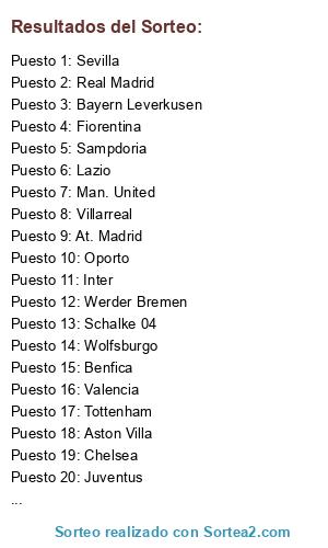 Lista de participantes: Man. United, Liverpool, FC Barcelona, Roma, Wolfsburgo, Bayern Leverkusen, Girondins, Man. City, Chelsea, Inter, Valencia, Juventus, Hamburgo, Schalke 04, Werder Bremen, Everton, Arsenal, Real Madrid, Sevilla, Milan, Bayern Munich, O. Lyon, Tottenham, Aston Villa, Oporto, Benfica, Villarreal, Fiorentina, At. Madrid, Stuttgart, Lazio, Sampdoria.