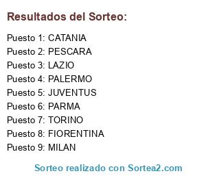 Lista de participantes: PESCARA, CATANIA, PALERMO, PARMA, LAZIO, TORINO, JUVENTUS, MILAN, FIORENTINA.