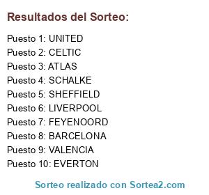 Lista de participantes: FEYENOORD, BARCELONA, SHEFFIELD, LIVERPOOL, CELTIC, VALENCIA, ATLAS, EVERTON, SCHALKE, UNITED.
