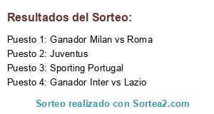 Lista de participantes: Juventus, Sporting Portugal, Ganador Milan vs Roma, Ganador Inter vs Lazio.