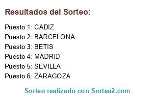 Lista de participantes: MADRID, BARCELONA, BETIS, SEVILLA, ZARAGOZA, CADIZ.