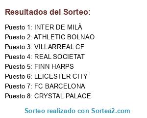 Lista de participantes: VILLARREAL CF, FC BARCELONA, REAL SOCIETAT, CRYSTAL PALACE, LEICESTER CITY, FINN HARPS, INTER DE MILÀ, ATHLETIC BOLNAO.
