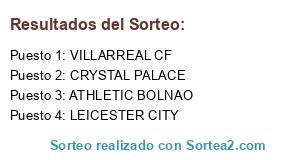 Lista de participantes: CRYSTAL PALACE, VILLARREAL CF, ATHLETIC BOLNAO, LEICESTER CITY.