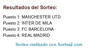 Lista de participantes: FC BARCELONA, REAL MADRID, MANCHESTER UTD, INTER DE MILA.