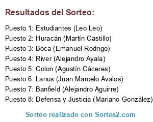 Lista de participantes: Huracán (Martín Castillo), Colon (Agustín Cáceres), Boca (Emanuel Rodrigo), River (Alejandro Ayala), Banfield (Alejandro Aguirre), Lanus (Juan Marcelo Avalos), Defensa y Justicia (Mariano González), Estudiantes (Leo Leo).