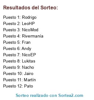 Resultados del sorteo:
